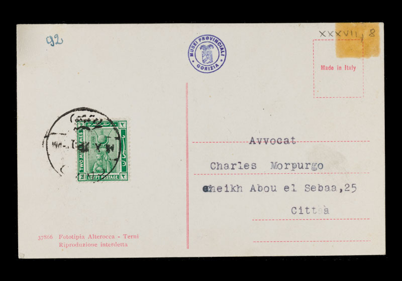 sul verso, a destra: Avvocat / Charles Morpurgo/ Cheikh Abou el Sebaa, 25/ Città