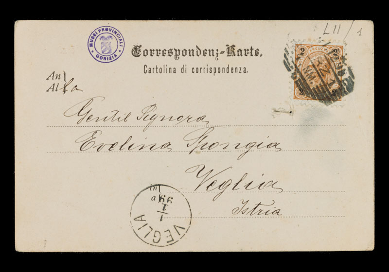 verso, su tutta la superficie: Gentile Signora/ Evelina Spongia/ Veglia/ Istria