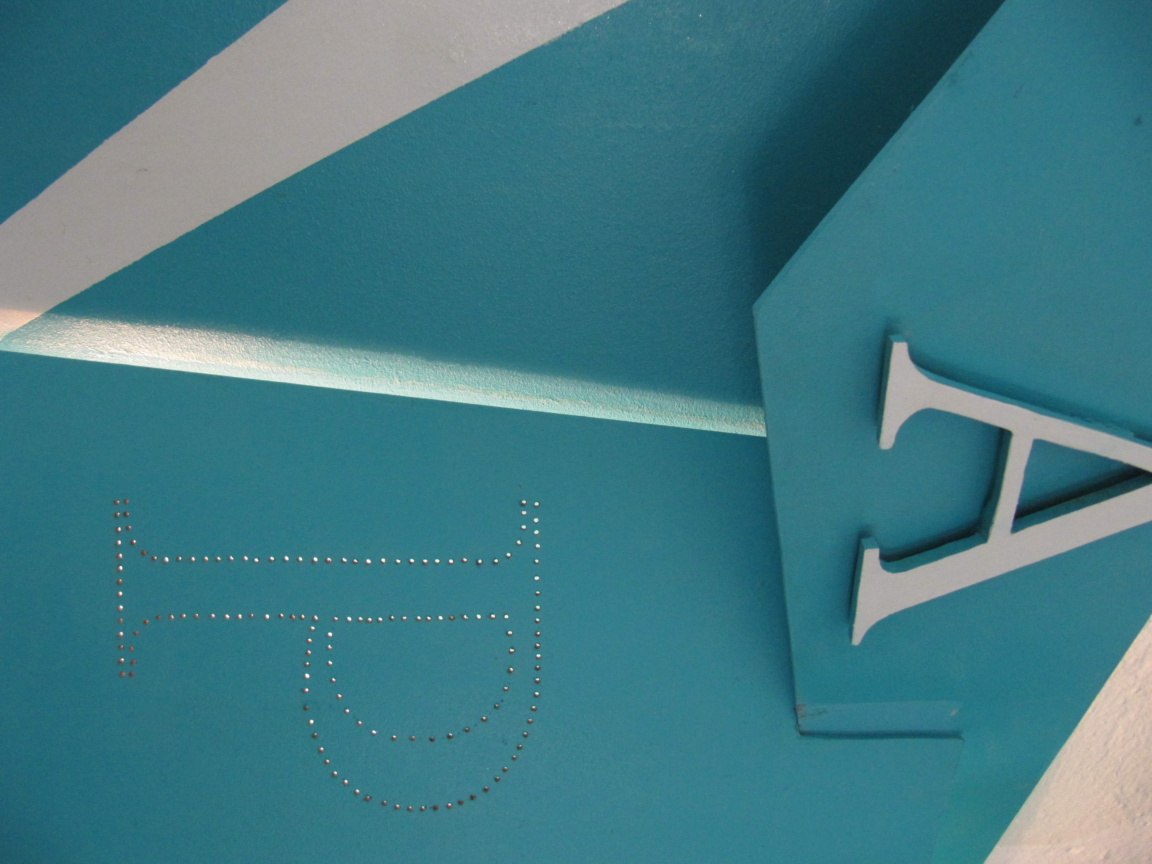 La decorazione è caratterizzata dai colori bianco, rosso vivo e nero. L'ambiente si sviluppa principalmente in profondità; il soggetto principale, alla sinistra dell'entrata, rappresenta il busto di uno scheletro sorridente che allunga il braccio destro in avanti come per tenere qualcosa tra le dita; sulla parete difronte prosegue il braccio sinistro del soggetto, come se indicasse qualcosa con la mano; in secondo piano, su tutto il perimetro, si estende un paesaggio rarefatto con alberi spogli, animato da pipistrelli, un corvo ed un gatto.