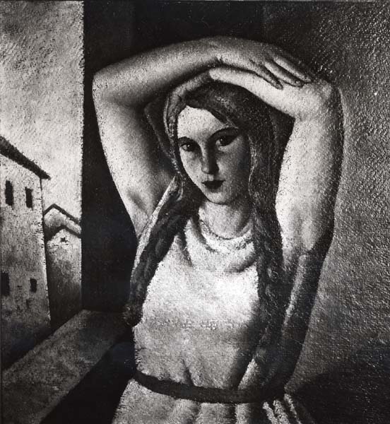 Una fanciulla, in abito rosa con le lunghe trecce ricadenti sulle spalle e le braccia alzate sopra il capo, campeggia al centro della tela lanciando, con ingenua sicurezza nelle proprie doti muliebri, uno sguardo d’invito al riguardante. Il dipinto, risalente ai primi anni Trenta del Novecento, rientra ormai nel periodo della maturità dell’artista che aveva compiuto la propria formazione dapprima all’Istituto Piccole Industrie di Trieste e, successivamente – grazie ad una borsa di studio del Comune – presso l’Accademia di Venezia, sotto la guida di Ettore Tito e Augusto Sezanne. Conseguito il diploma nel 1921, su invito di Nino Barbantini, presentò i propri lavori in una mostra personale allestita a Ca’Pesaro a Venezia nel 1922, dando avvio ad una feconda attività espositiva. Dopo un breve soggiorno a Roma, Stultus rientrò a Trieste dove prese a partecipare con una certa assiduità alle mostre organizzate dal locale Circolo artistico (1924, 1926) e dal Sindacato regionale Belle Arti a partire dal 1927. Durante questa prolungata residenza nella città natale l’artista ebbe modo di riallacciare i contatti con l’ambiente figurativo del capoluogo giuliano rimanendo suggestionato, in particolare, dalla ricerca pittorica di Piero Marussig. Inizia, in questo periodo, la fase di avvicinamento del pittore allo stile di Novecento italiano, movimento a cui però Stultus non aderì mai ufficialmente. Nello stesso arco cronologico egli continuò ad approfondire le proprie conoscenze nei riguardi dell’arte del Rinascimento italiano che aveva già imparato ad apprezzare durante gli studi accademici, con particolare attenzione per la scuola veneta quattro e cinquecentesca. La progressiva semplificazione geometrizzante delle forme che fa capolino nelle opere di Stultus negli anni Venti, a partire da Le due madri (1926; Trieste, Asilo comunale di S. Giusto), è dovuta alla rilettura dell’arte di Cézanne e all’influsso di Casorati soprattutto per la luce vivida e quasi irreale che contraddistingue i dipinti di quel periodo. Nel corso degli anni Trenta egli andò definendo il suo stile secondo una progressiva estremizzazione nella resa della forma e dei volumi dedicandosi a soggetti tratti dal mondo agreste e dalla vita contadina. L’opera dei Musei Provinciali di Gorizia rientra, per il tema trattato, nel novero di questi dipinti caratterizzati da un uso del colore distribuito sulla tela a corpo in funzione costruttiva di forme e volumi. (GRANSINIGH 2007, p. 218)