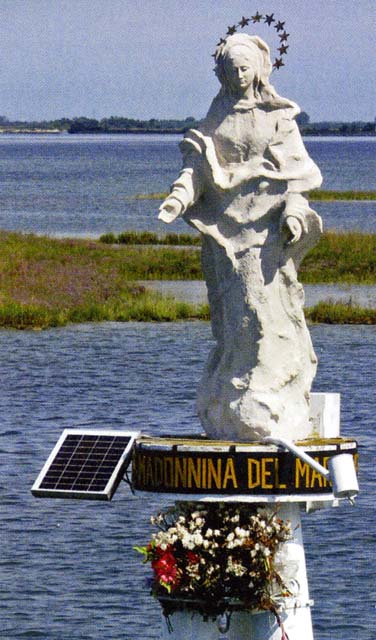 Statua a carattere votivo, collocata sulla sommità di una briccola lungo il principale canale lagunare che dal mare aperto conduce al porto. Rappresenta la Madonna, in piedi, con il Bambino nel braccio sinistro e, quello destro, leggermente proteso verso l'esterno. In basso, sulla briccola, c'è un contenitore di fiori.