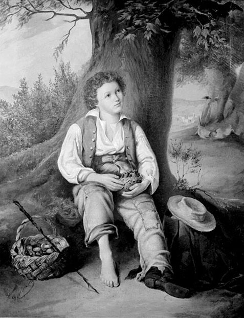 Il dipinto ritrae un bambino seduto alla base di un grosso albero con in mano un nido d'uccelli. La sua modesta condizione è testimoniata dagli stracciati. Calza soltanto la scarpa sinistra, ha appoggiato a terra accanto a sé la giacca e il cappello di paglia. Sulla sinistra un cesto pieno di funghi sul quale è appoggiato un bastone. Sullo sfondo uno scorcio di paesaggio con alberi.