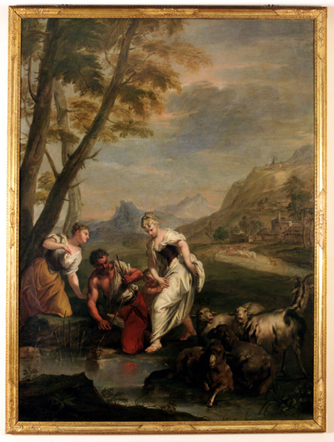 Il dipinto presenta una cornice lignea dorata.