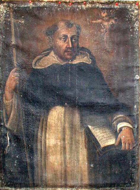 Il dipinto raffigura il domenicano Raimondo di Penyafort. Questa tela fa parte di una serie di dipinti realizzati per il santuario di Madonna di Strada e raffiguranti beati e santi dell'Ordine dei Domenicani. Il santuario, infatti, passò ai Domenicani della Congregazione di Giacomo Salamonio e si insediarono dal 1678 fino alla soppressione avvenuta nel 1770. Il dipinto, assieme agli altri della serie, è stato recentemente attribuito al pennello del Buzzi da Paolo Goi. Pittore sandanielese, il Buzzi ebbe una sua committenza locale, in Carnia e in Friuli e si caratterizza per una tavolozza di impasti pesanti di natura certamente più sei che settecentesca.