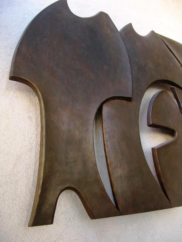 L'opera si sviluppa in senso orizzontale e si compone di sette elementi mistilinei dei quali, cinque di maggiori dimensioni e due più piccoli. E' fissata a una parete dell'atrio d'ingresso dell'edificio con quattordici ganci metallici posti sul retro.