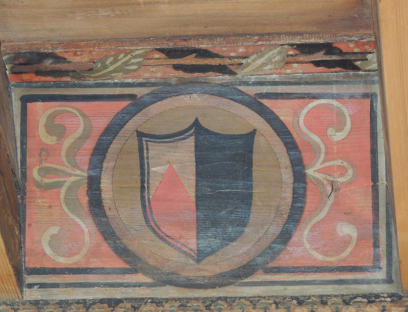 Tavoletta da soffitto realizzata in legno di abete, dipinta a tempera direttamente sul supporto privo di preparazione, ma semplicemente impermeabilizzato con una stesura di colla probabilmente di origine animale. All'interno di una circonferenza è posto lo stemma della Fantolina su scudo alla veneta. Il tutto è inserito all'interno di una cornice rettangolare.
