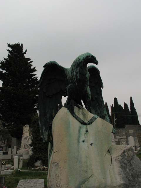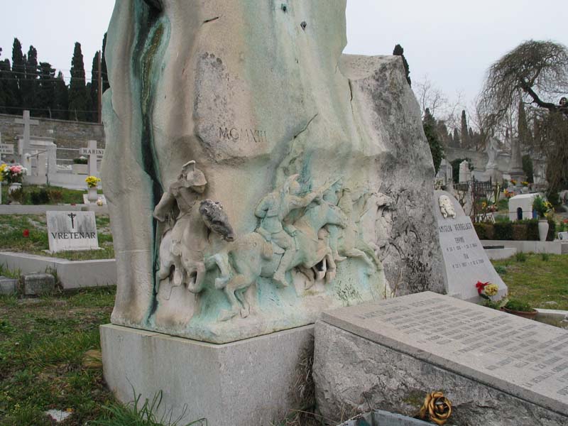 sulla lapide a terra: QUI GIACE/ BARTOLOMEO BERTOLINI/ CAPITANO DEL I. IMPERO FRANCESE/ CAVALIERE DELLA LEGION D'ONORE/ DECORATO CON LA CROCE DELL'ORDINE/ DELLE DUE SICILIE E CON LA MEDAGLIA/ AL VALORE MILITARE DI SANT'ELENA/ FU PRODE SOLDATO SUL CAMPO DI BATTAGLIA/ NELLA VANDEA A SAN DOMINGO IN EGITTO/ AUSTERLITZ RAAB WAGRAM/ E FINALMENTE NELLA SPEDIZIONE DI RUSSIA/ SULLA MOSCOVA E WATERLOO/ VISSE 105 ANNI/ NON SMENTÌ MAI IL SUO CARATTERE GUERRESCO/ NELLA FEDE IN DIO ONNIPOTENTE/ IL 23 GENNAIO 1871 SPIRÒ/ LA DESOLATA CONSORTE MARIA NATA ROSSINOVICH/ A PERENNE MEMORIA D'AFFETTO/ QUESTA MODESTA LAPIDE BAGNATA DI PIANTO/ QUI POSE