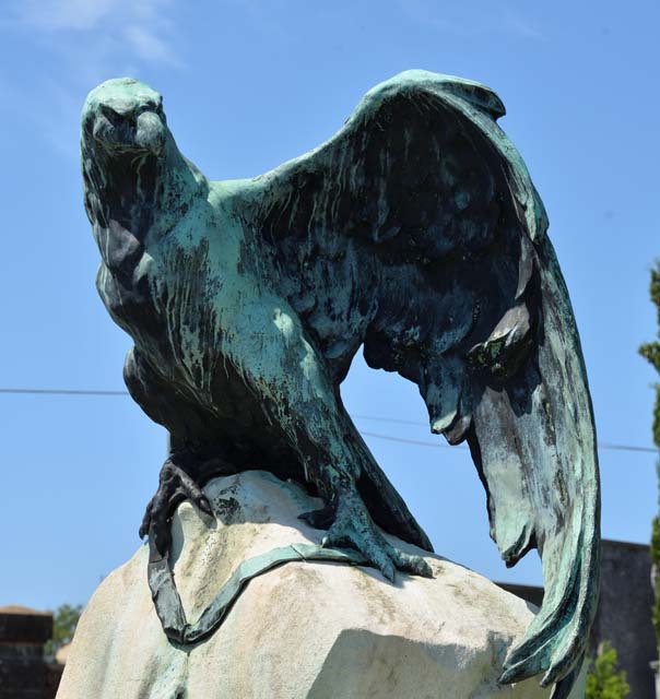 Sopra un blocco di roccia al naturale è posta una grande aquila bronzea ad ali spiegate, che stringe tra gli artigli il nastro dal quale originariamente pendeva l'onorificenza della Legion d'Onore (se ne vedono ancora i tre fori di fissaggio). Alla base corre un fregio a rilievo raffigurante una carica di cavalleria. La lapide commemorativa poggia su un basamento con la faccia superiore posta in obliquo, affiancato da due bassi vasi portafiori rettangolari con facce scanalate.