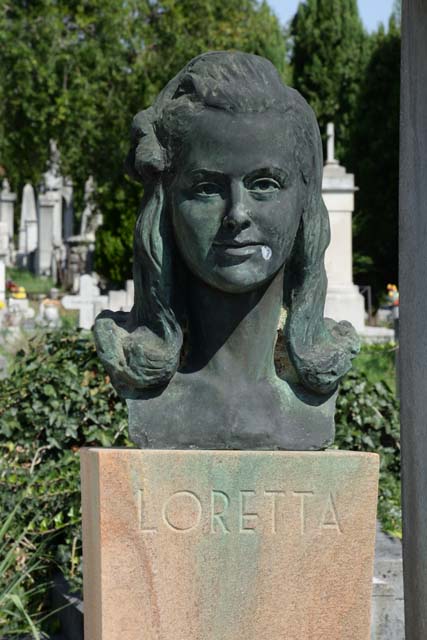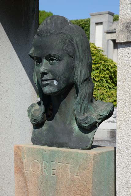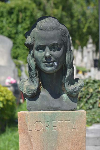La struttura orizzontale della tomba è composta da una base con tre gradini sul davanti e da una lapide con la faccia superiore leggermente obliqua. L'incorniciatura dell'alzato, costituita da due pilastri con croce latina a rilievo e architrave con il nome della famiglia in caratteri rilevati, circonda il busto ritratto bronzeo della giovane Loretta Vessilli, collocato sopra un piedistallo rastremato verso il basso.