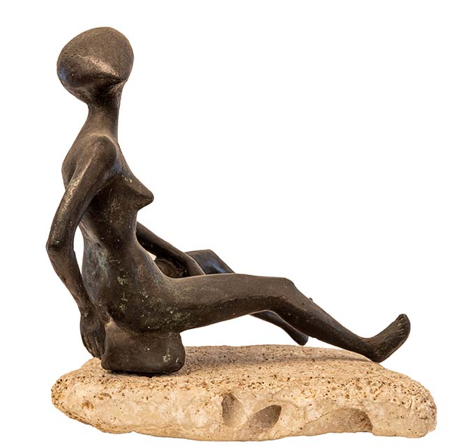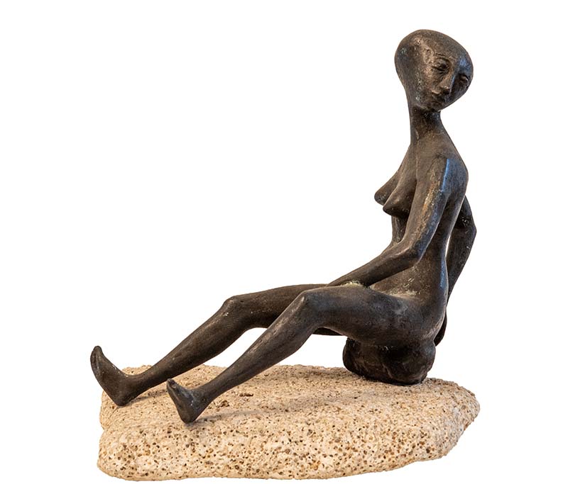 La statua raffigura una giovane donna nuda al mare, mentre prende il sole seduta su uno scoglio. Come base per la scultura è stato utilizzato un sasso poroso.