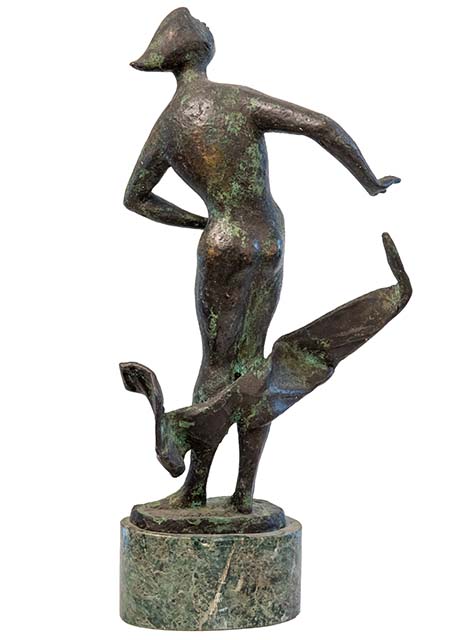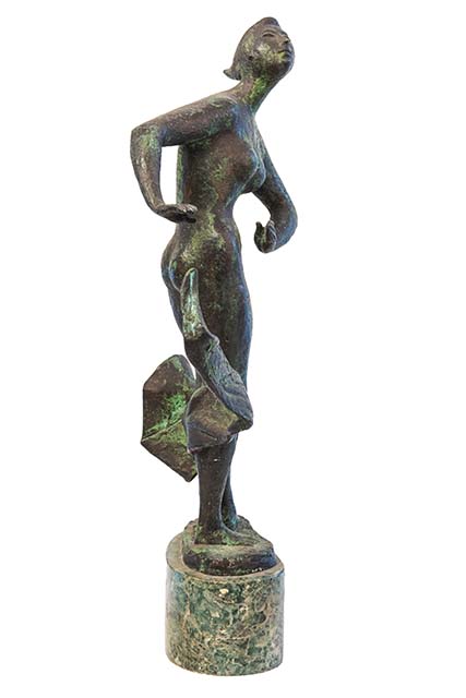 Il bronzetto ritrae una giovane donna nuda, colta in piedi in una posa avvitata. Dietro le sue gambe, all'altezza dei polpacci, un drappo si agita come mosso dal vento. La scultura è fissata su una base ovale in marmo.