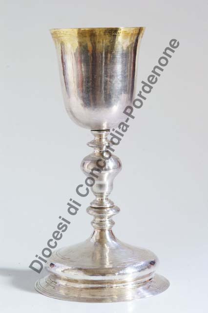 Il calice presenta piede a base circolare con orlo espanso lievemente svasato e corpo bombato, fusto con nodo a pera rovesciata compreso tra rocchetti lisci, coppa leggermente svasata dorata all’interno e intorno al bordo esterno. L’unica decorazione del manufatto è costituita da circonferenze incise su piede e nodo.