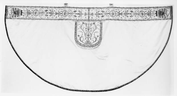 Il ricamo, realizzato da una bottega di ricamatori forse veneti, date le relazioni più prossime dell'arcidiocesi udinese, su commissione, come convalida la presenza dello stemma con l'arme di Gian Gerolamo Gradenigo / Gradinigo arcivescovo di Udine dal 1766 al 1786 (Venezia, 1708 – Udine, 1786), è stato trasportato su un tessuto tardo ottocentesco e lo stesso stemma è databile a tale periiodo. La datazione indicata fa riferimento al periodo in cui egli fu vescovo. Il tessuto originario confeziona tuttora la pianeta e gli altri parati. L'allegato tessile si riferisce al tessuto usato per il trasporto. Il ricamo nell'operazione di trasporto ha subito delle manomissioni per quanto riguarda l'impostazione del decoro e alcuni elementi dello stesso.