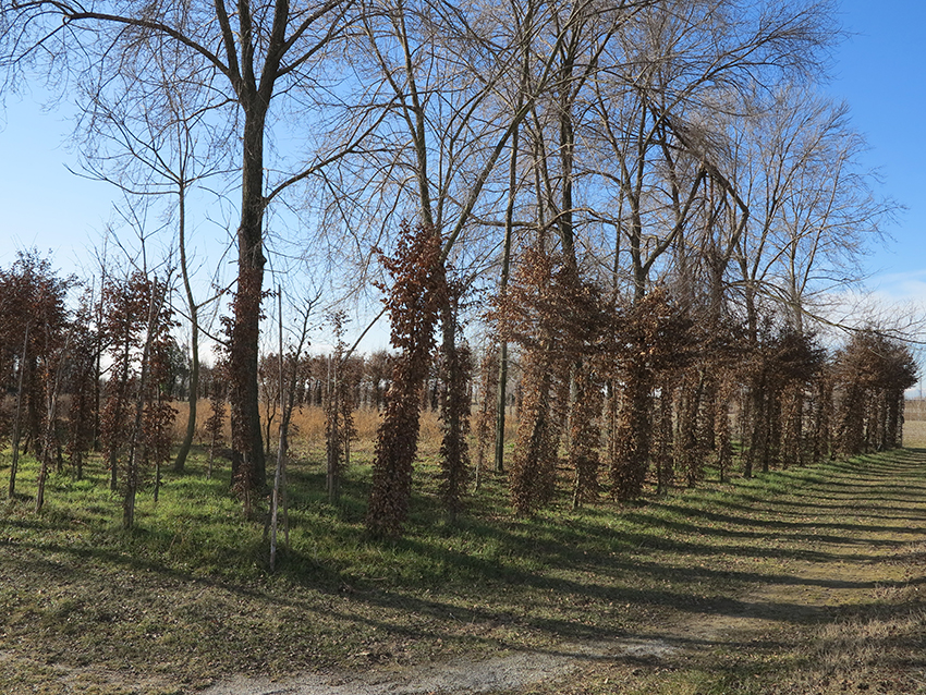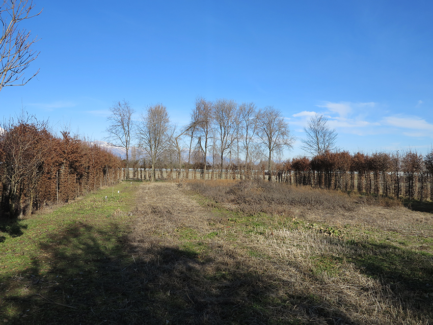 L'uccellanda è stata realizzata a metà degli anni Sessanta da Mario Cossetti dopo un'attenta osservazione del passo. In attesa che i carpini crescessero e dessero forma alla struttura vegetale, a Nord venne allestita per poco tempo una prodina; sullo stesso luogo furono poi piantati gli alberi della passata che però non entrò mai in funzione. L'impianto era anche adibito a stazione di inanellamento. La bressana è aperta a Est, il casello è posizionato sul lato Nord della bressana ma al centro dell'impianto complessivo, il corridoio di carpini dei lati Ovest e Sud sorge su un rilevato che consentiva di alzare la rete. A ridosso dell'impianto esternamente al bordo meridionale si eleva un grande pioppo che con altri alberi tenuti alti dall'uccellatore fungeva da posatoio per gli uccelli. La passata sul lato corto è affiancata all'interno da un filare di olmi. Col tempo il proprietario ha trasformato l'impianto in un vero e proprio orto botanico, piantando un migliaio tra alberi e arbusti.
