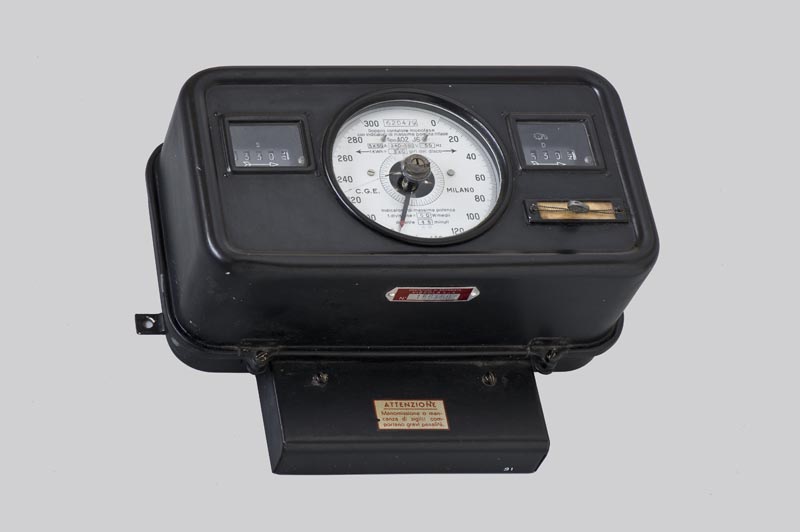 Contenitore a forma di parallelepipedo di colore nero, provvisto inferiormente di un elemento di ancoraggio. La chiusura del contenitore è assicurata tramite quattro viti che congiungono i due elementi costitutivi. Sulla faccia anteriore un quadrante centrale circolare presenta la misurazione dei watt con una numerazione che va da 0 a 300, mentre le due finestrelle rettangolari situate lateralmente contano i kilowattora (quello destro, sigillato, indica il consumo in eccesso, quello sinistro il consumo regolare). Due sigilli di piombo bloccano l'apertura dello strumento.