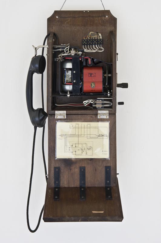 Viene fissato a parete tramite quattro robuste viti. Per effettuare una chiamata dopo aver posizionato la levetta di accensione dell'apparecchio e alzato la cornetta telefonica, si aziona la manovella di chiamata. Al momento della ricezione della chiamata, per effettuare la comunicazione è necessario tener premuto verso il basso la stessa levetta di accensione e alzare la cornetta.