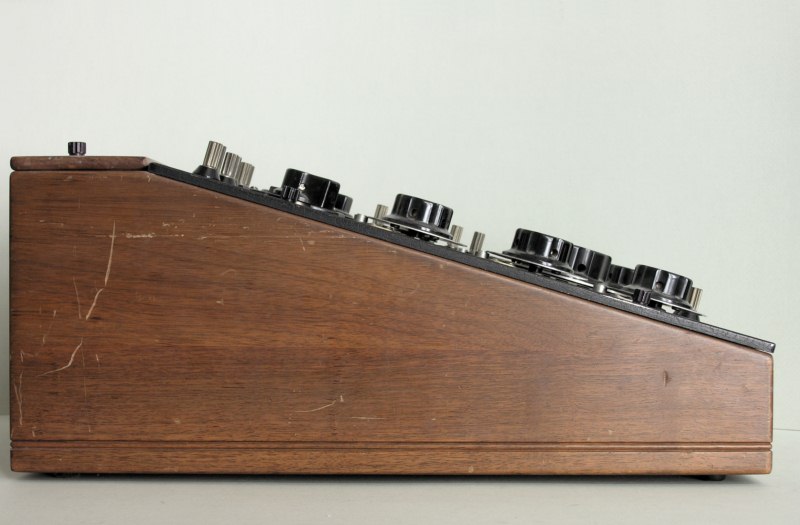 Oggetto a forma di parallelepipedo con rivestimento ligneo, ed una parete metallica inclinata, che costituisce il sistema di controllo dello strumento. L'interfaccia di lettura della misura è costituita da una finestra circolare in vetro, posta nella parte alta della lamina metallica, che mostra un ago su di una scala di misura in µA. Tre coppie di spinotti, posti sopra il display insieme ad altri tre spinotti in posizione laterale e ad un'altra coppia in basso, costituiscono il sistema di connessione dell'apparecchio. Gli spinotti sono costituiti da una vite fissa e da una rotellina, avvitabile a seconda delle necessità, realizzata in acciaio. A formare invece il sistema di controllo sono nove regolatori a manopola, di cui due accoppiati, dispoti ordinatamente su tutto il pannello inclinato. Iscrizioni, stampate in prossimità di regolatori e spinotti, ne indicano la funzione.