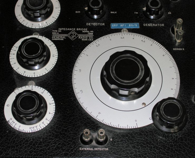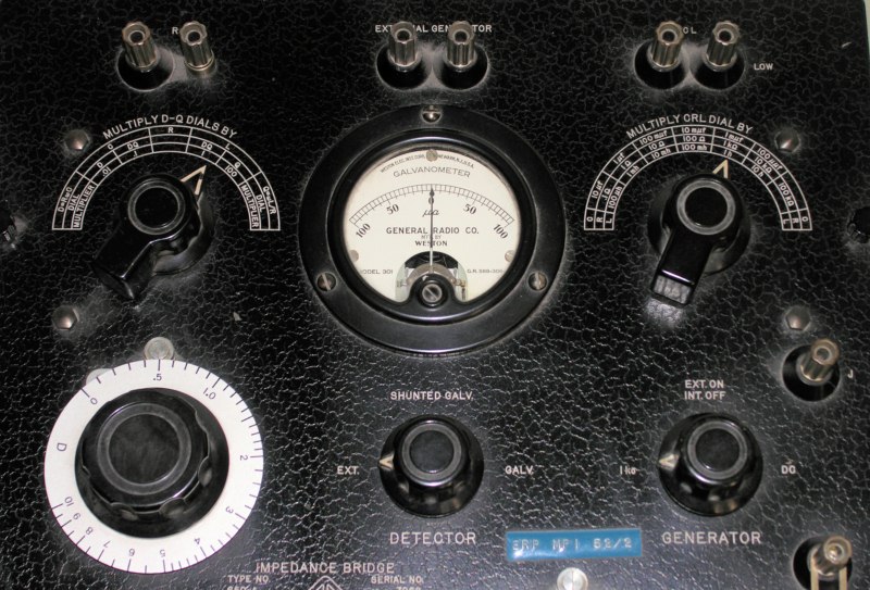 quadro di controllo: GALVANOMETER/GENERAL RADIO CO./M'F'D. BY/WESTON/MODEL 301/G.R. 588 - 306 - A/IMPEDANCE BRIDGE/TYPE NO./650-A/SERIAL NO./7968/GR/GENERAL/RADIO CO./CAMBRIDGE/MASS. U.S.A.