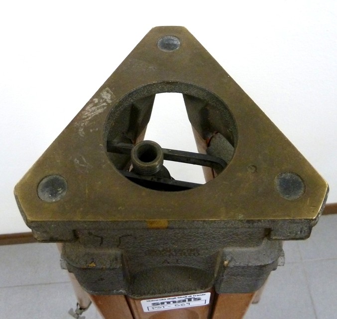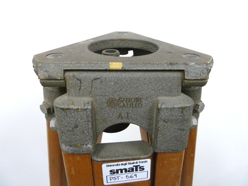 Treppiede con gambe in legno, accorciabili. Superiormente presenta una piastra d'appoggio che consente il fissaggio dello strumento topografico per mezzo dell'apposito vitone sottostante. Inferiormente, la punta delle gambe, dotata di apposite staffe per l'infissione nel terreno, è rivestita da una lamina metallica che ne evita il deterioramento. Il movimento delle gambe sulle cerniere può essere registrato tramite tre apposite viti poste lungo le stesse. Una cinghia di cuoio, fissata alla porzione di lunghezza fissa di una delle gambe, consente, una volta chiuso, di bloccarlo per facilitarne il trasporto.