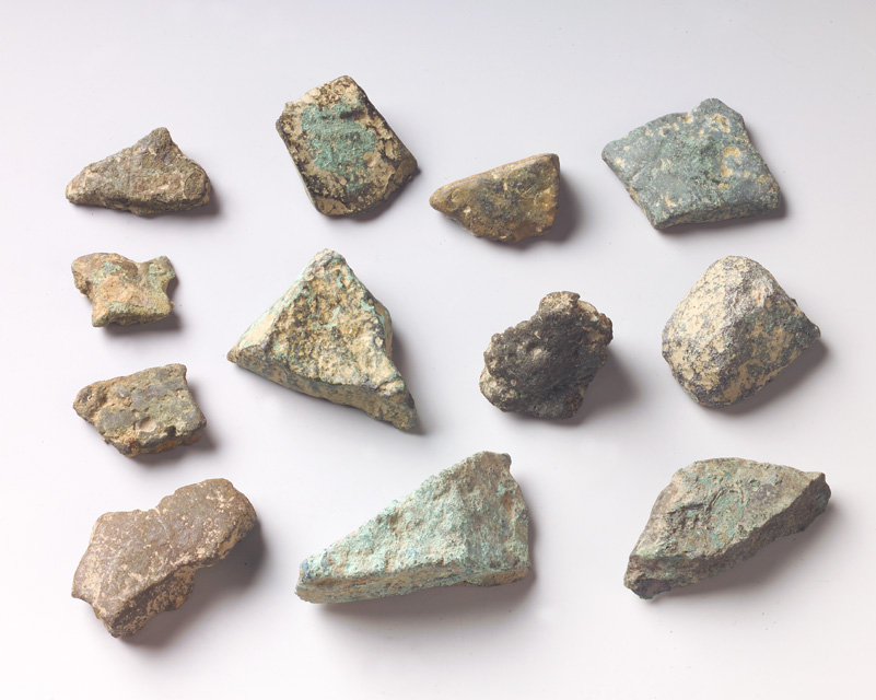 I dodici frammenti di panelle, cui si riferisce questa scheda, hanno dimensioni ridotte e sono probabilmente il prodotto di frammentazioni intenzionali dei pani a "frittata", attestati in ambito regionale da diversi ripostigli tra il Bronzo recente e la fine del Bronzo finale