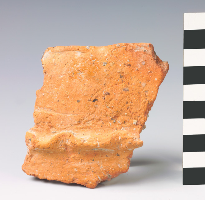 Bordo tagliato obliquamente all'interno, brevissimo orlo rientrante, corpo subcilindrico su cui è applicato un cordone orizzontale digitato.