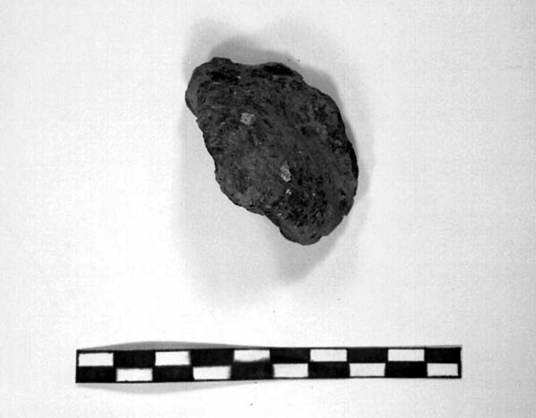 presa a linguetta di modeste dimensioni, di impasto argilloso con grosse inclusioni. La superficie è di color nocciola all'esterno, di colore nero all'interno.
