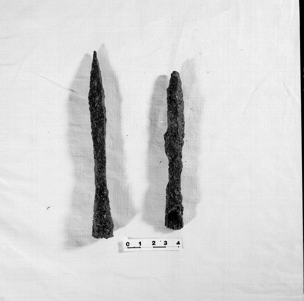 due punte di freccia da balestra. le punte sono piramidali a sezione quadrangolare, rastremate con cannone a sezione circolare