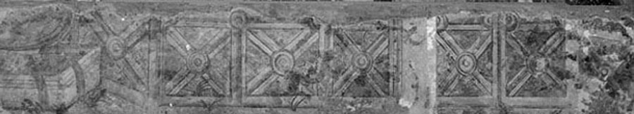 Affreschi tardoantichi a destinazione liturgica. rappresentano delle transenne lignee a elementi quadrati con assi trasversali che circondano delle fontane da cui sgorgano rivoli d'acqua. Si tratta di una probabile rappresentazione del giardino paradisiaco secondo la tradizione della pittura illusionistica romana.