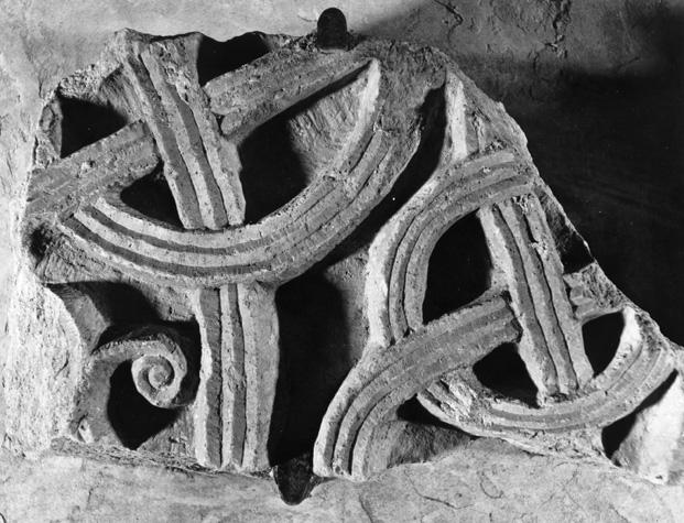 frammenti di pluteo decorati con motivo di intreccio vimineo a tre capi che formano cerchi annodati a forma di otto.
