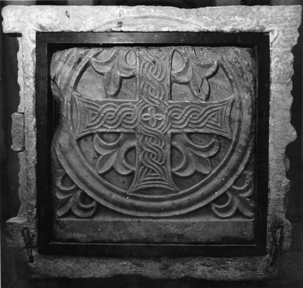 cassa realizzata su un unico blocco di marmo bianco, decorata su tre facce. la decorazione della faccia centrale è costituituita, al centro, da una croce fiorita con girali vegetali e trifogli, racchiusa entro un tondo lavorato a spina di pesce, gli spazi di risulta superiori contengono due gigli stilizzati, quelli inferiori due fiori cuoriformi. Nello spazio superiore e in quello inferiore al tondo sono scolpite due coppie di archetti, a tortiglione. Le due facce laterali sono suddivise in dieci riquadri da una cornice con onde ricorrenti costituite da coppie di tralci viminei terminanti a trifoglio su una faccia, a rosetta sull'altra, i riquadri sono decorati con rosette, margherite a quattro e a sei punte, fiori cuoriformi, motivi a S costituiti da tralci viminei terminanti a trifoglio e archetti con l'albero della vita. Le due facce minori presentano un tondo a triplice solcatura, che racchiude una croce campita a intreccio con quadrifoglio centrale e gigli stilizzati agli angoli.