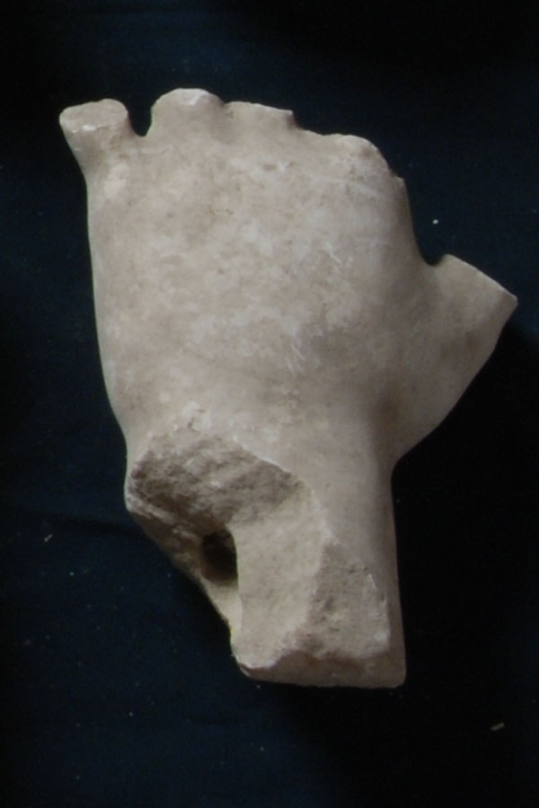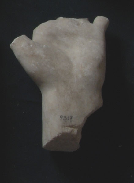Si tratta della mano sinistra di una statua a tutto tondo di dimensioni superiori al vero. La presenza di un foro circolare all’estremità dell’avambraccio fa ritenere che la statua fosse composta da più parti. Lavoro di media qualità.