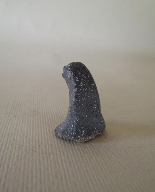 frammento di ansa ad anello di bicchiere o di olletta. Il corpo ceramico è caratterizzato da impasto duro, secco al tatto, con frattura irregolare. Argilla da marrone a grigia. Inclusi di calcite, selezionati e ben distribuiti, di dimensioni prevalentemente piccole. Impasto in frattura: colore Munsell 2.5 Y 4/1 (dark gray).