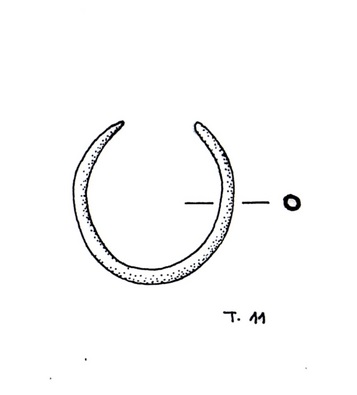 Cerchietto temporale, rientrante nel cosiddetto "finger-ring" type. Filo a sezione circolare, con una estremità tronca e l'altra appuntita