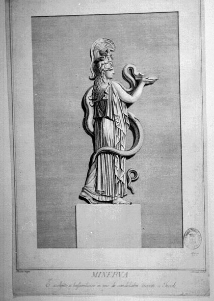 in basso al centro sotto il campo figurato: MINERVA/ È scolpito a bassorilievo in uno dei candelabri trovati a Tivoli.