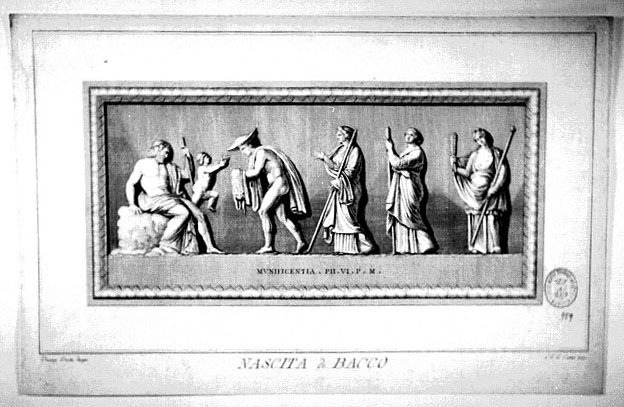 in basso al centro sotto il campo figurato: NASCITA di BACCO