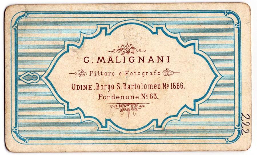 G. MALIGNANI/ Pittore e Fotografo/ UDINE. Borgo S. Bartolomeo N° 1666./ Pordenone N.° 63