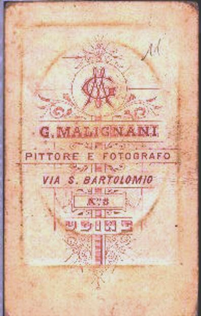 MG (monogramma)/ G. MALIGNANI/ PITTORE E FOTOGRAFO/ VIA S. BARTOLOMIO N.° 8/ Udine